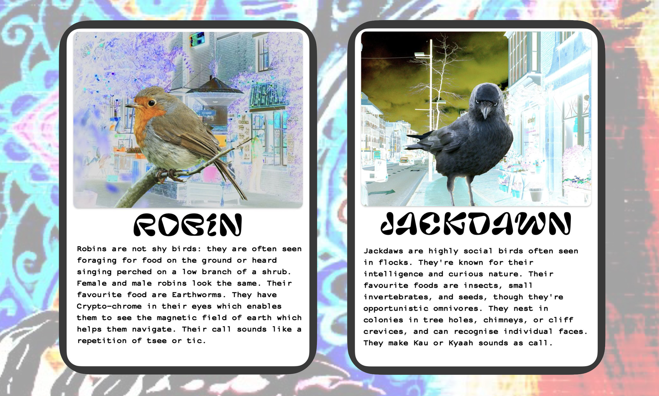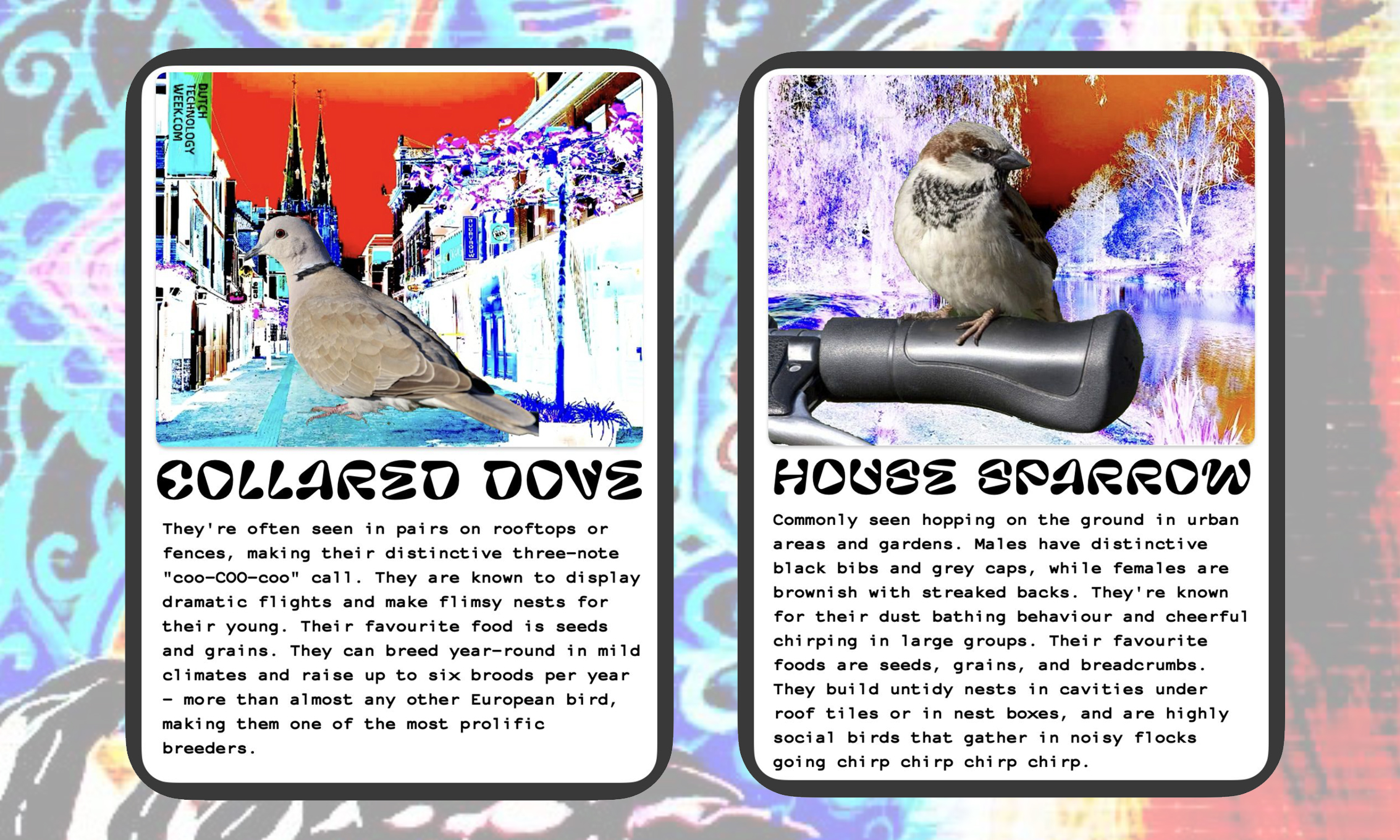 How connected to nature are we who dwell in cities? Citybirds is meant to be played in urban parks featuring citybirds that all of us in cities encounter. They form a connection to nature that is easily forgotten in the rush of daily life. How is it to be a citybird?
