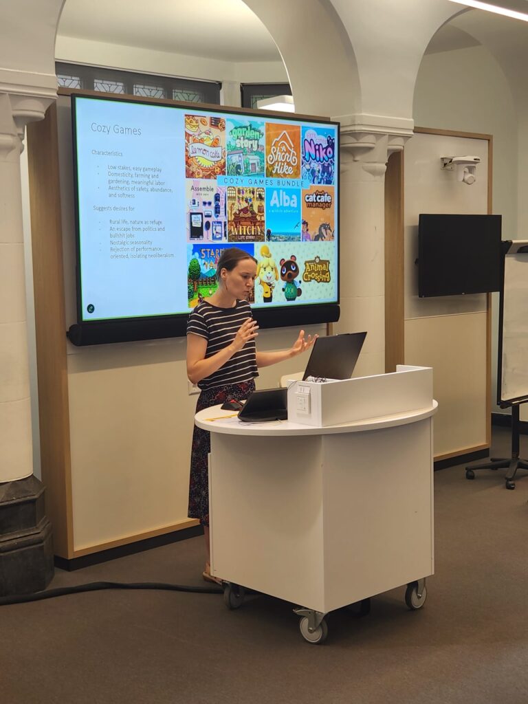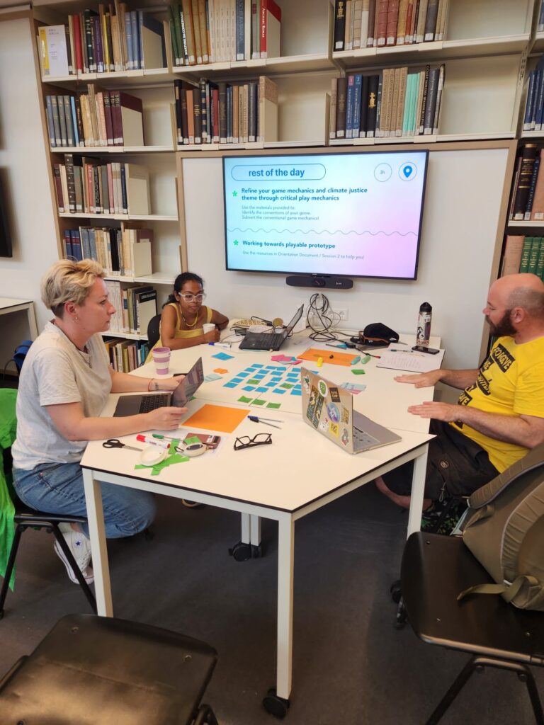 Dr Stefan Werning, an associate professor for Digital Media and Game Studies at Utrecht University, kicked off the event with a presentation focused on eco-games, sharing his expertise on how games can be used to shape, challenge, and spread awareness about climate issues. To bring this to life, participants then played and discussed some of these eco-games (such as The Climate Trail and Half-Earth Socialism). This was a great way to introduce participants to the topic of eco-games, start exchanging ideas between participants, and have some fun (it is a game jam after all!). Playing these games also allowed participants to start considering how game-making can be used as a medium to explore and communicate deeper cultural and social meanings.